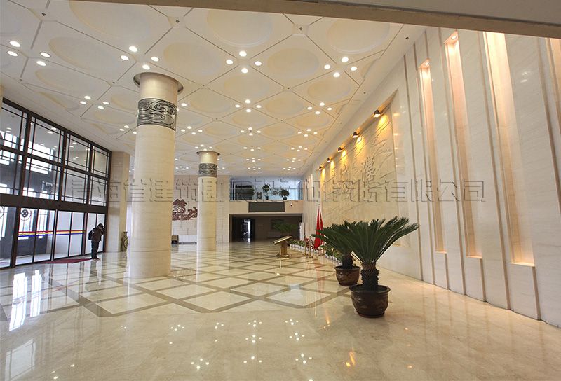 青海省高級人民法院審判辦公樓工程位于西寧市城北區(qū)柴達木路與西站二巷道路交叉口西南角,總用地面積60.27畝,用地內(nèi)布置審判辦公樓、法官培訓(xùn)中心、干警高層住宅樓及配套鍋爐房等項目。審判辦公樓總建筑面積32671.00m2,地上層數(shù)為8層,地下1層,建筑高度31.80m。主體建筑分為辦公用房和審判用房兩個部分。建筑一層及局部地下室設(shè)汽車庫、設(shè)備用房、檔案室和羈押用房。辦公部分二至八層為法院行政公共用房,其中二層設(shè)門廳、多功能會議廳,頂層設(shè)大會議室、視頻會議室、閱覽室、健身房等,其他樓層設(shè)辦公及部門會議室。辦公用房設(shè)置滿足規(guī)范《黨政機關(guān)辦公用房建設(shè)標準》的要求。依據(jù)《人民法院法庭建設(shè)標準》審判用房布置在辦公樓東南側(cè),相對獨立,其中設(shè)大法庭1個,中法庭2個,小法庭8個,另設(shè)立案大廳、信訪大廳、候?qū)彺髲d及法官和參與庭審活動的律師、證人、公訴人等人員的配套服務(wù)用房。審判法庭布置重點解決法庭內(nèi)各種流線的要求,即法官通道、羈押通道、旁聽觀眾通道,三者獨立又互相聯(lián)系的關(guān)系。