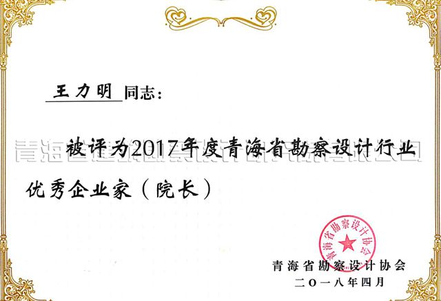 會上表彰了2017年度青海省勘察設(shè)計行業(yè)優(yōu)秀企業(yè)和2017年度青海省勘察設(shè)計行業(yè)優(yōu)秀企業(yè)家。我公司被授予2017年度青海省勘察設(shè)計行業(yè)優(yōu)秀企業(yè),董事長王力明被授予2017年度青海省勘察設(shè)計行業(yè)優(yōu)秀企業(yè)家。